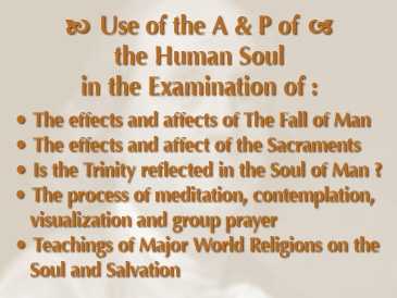 The Program’s Goal is to so thoroughly Map the Anatomy & Physiology of the Human Soul™, its Soul Organs™ and Soul Organ Systems™, operations, environment and the systemic interfaces and homeostatic regulatory processes between the Mind, Body, Brain, Soul & Spirit System™ that the Mapping of the Human Soul™ gradually proves itself thru a preponderance of coherent predictions, repeatable experiments; and clear and coherent communication about the Soul and the Program's results through an advanced, proprietary & scientific visualization technology. Readily understood by Scientific, Medical and Theological Communities through strategic technical papers which address difficult, field specific, paradigm-shifting problems.